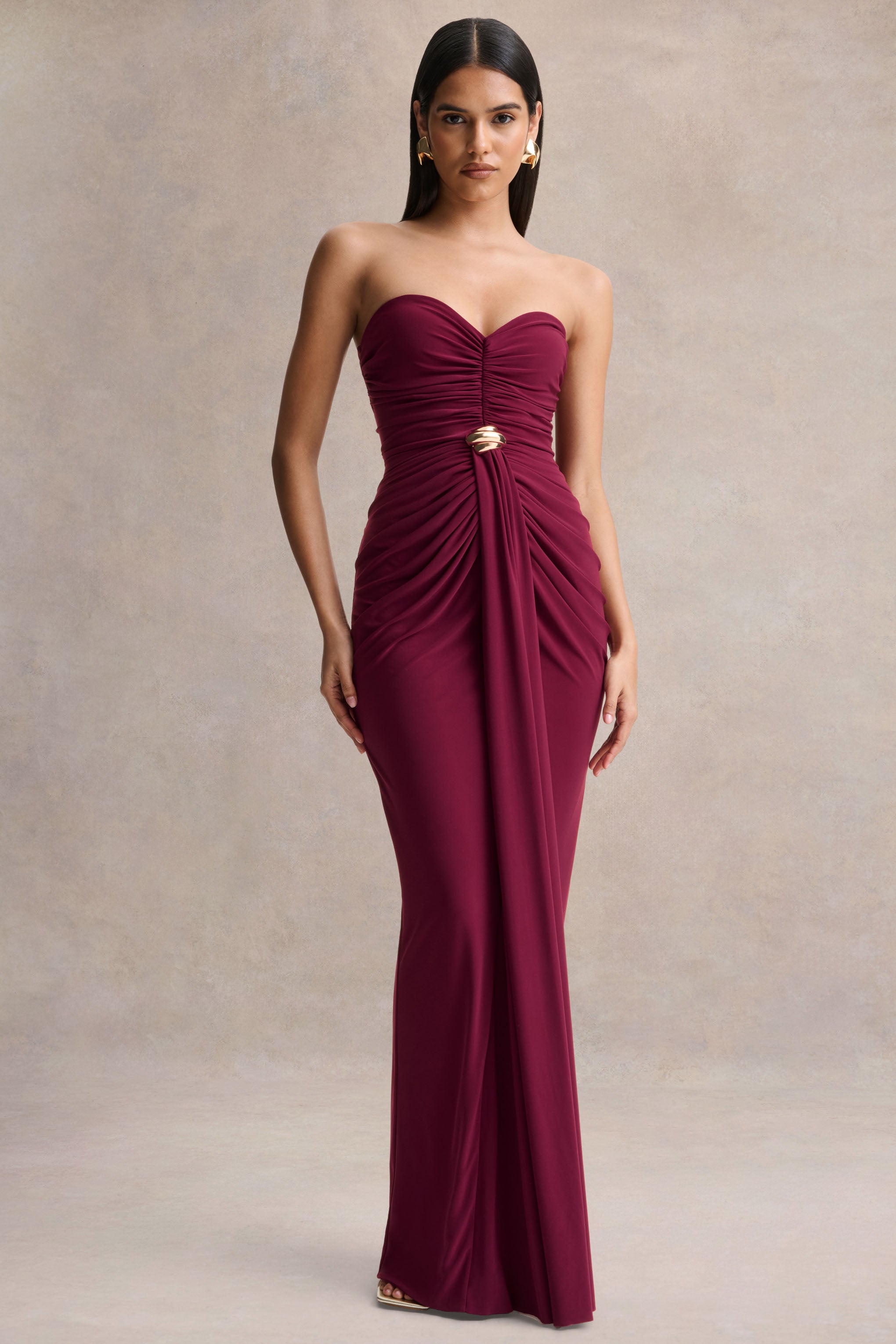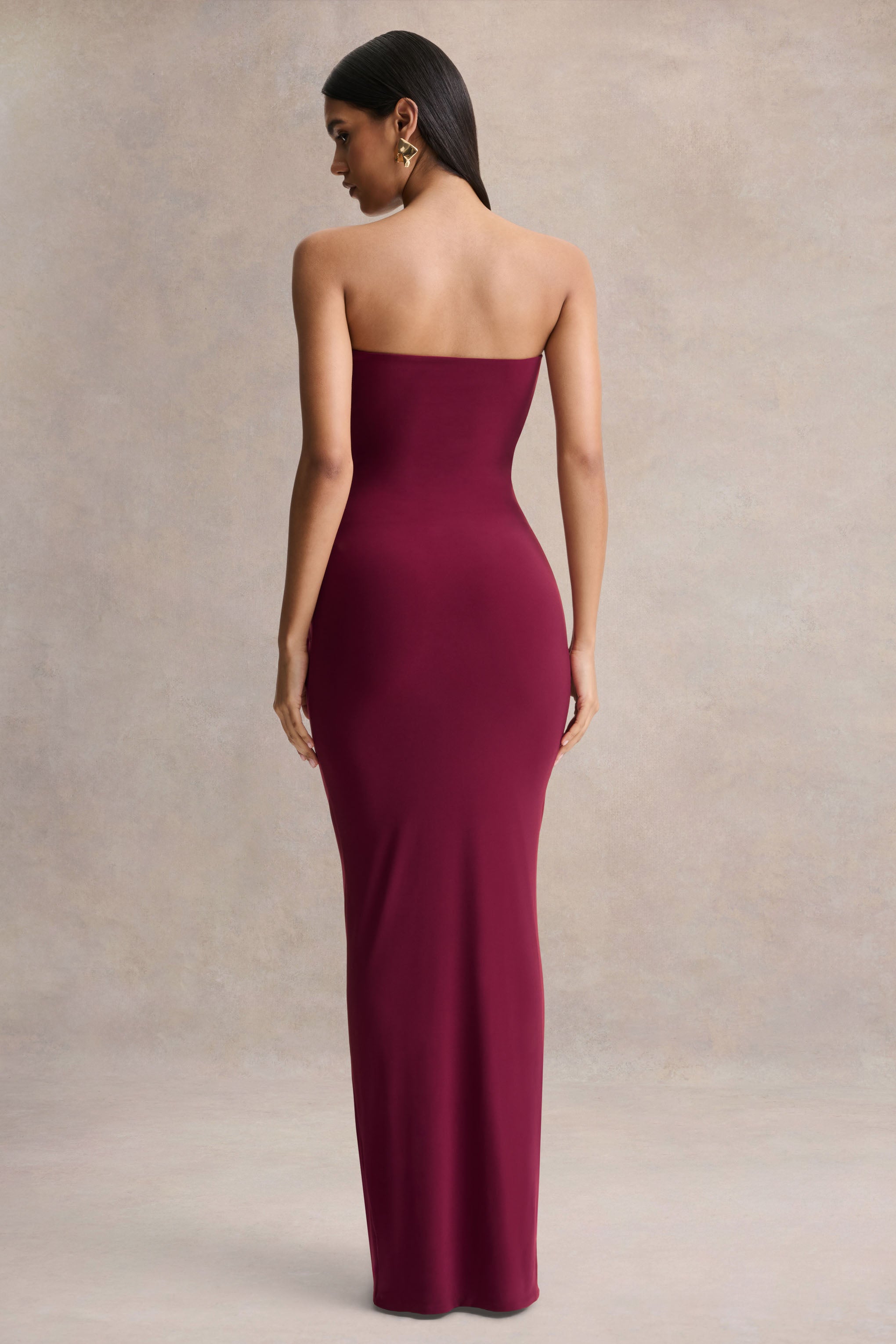 Beverly | Burgundy Bandeau Maxi Dress With Gathered-Detailing