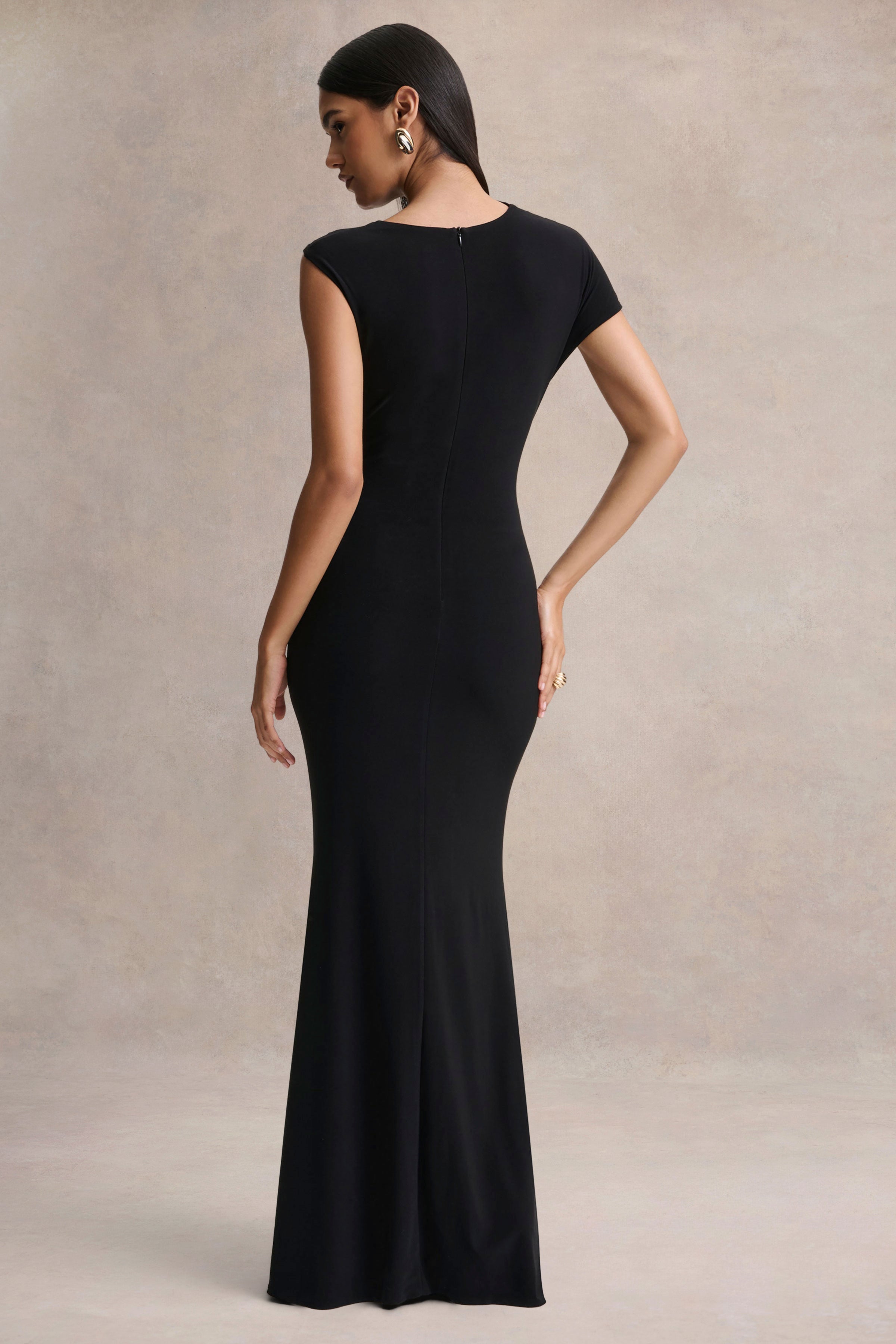 Amoura | Black Square-Neck Draped Wrap Maxi Dress