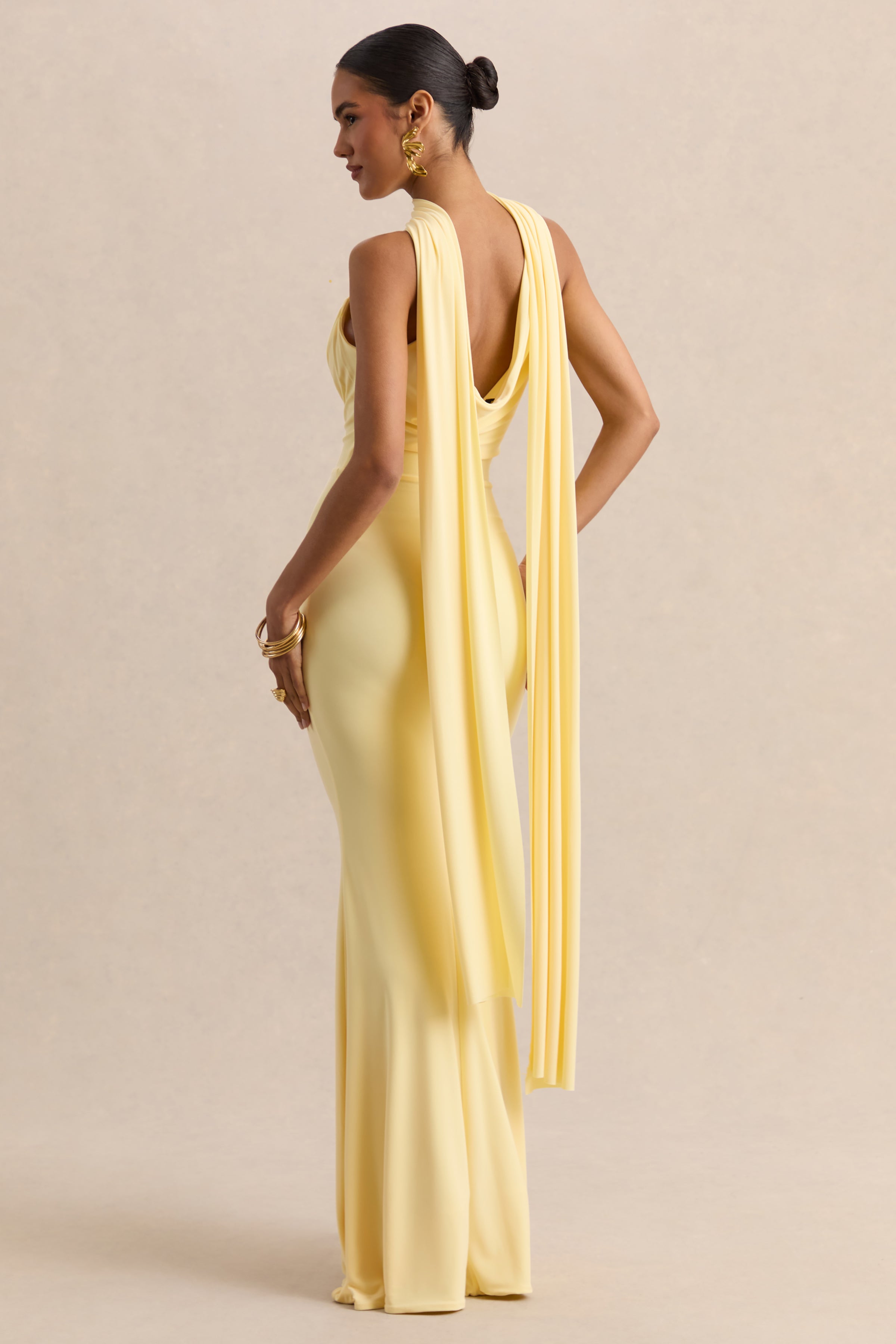 Armelia | Lemon Cowl-Neck Maxi Dress With Scarf-Detail
