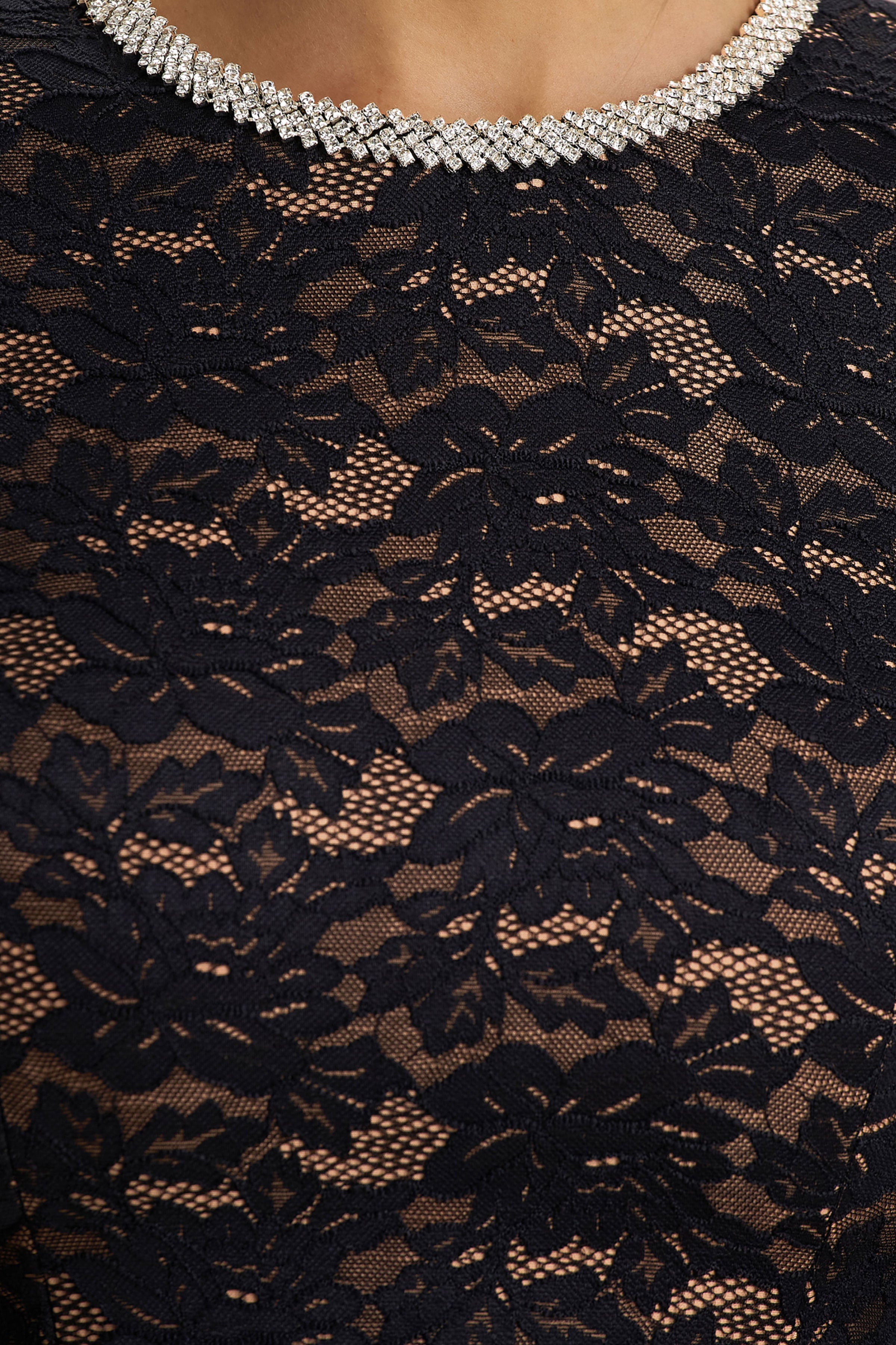 Divine is the piece that blends sophistication with just the right amount of allure. Cut from our premium black lace. this mini dress flatters the figure while bringing texture and allure. The embellished crew neckline adds sparkle. perfectly balancing the elegance of the long sleeves. Finished with a playful skater skirt. Divine is the go-to for nights that call for timeless glamour with a modern twist.